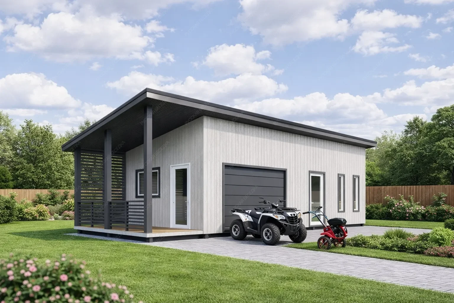 Деревянный гараж — это не только удобное и функциональное сооружение, но и отличная возможность дополнить архитектурный стиль вашего участка. Деревянные конструкции остаются вечной классикой, так как дерево — экологически чистый и натуральный материал. Одним из основных преимуществ деревянных гаражей является их доступная цена, что делает их более выгодным вариантом по сравнению с постройками из других материалов. При правильном строительстве деревянный гараж может служить десятилетиями, сохраняя все свои свойства и привлекательный внешний вид. Мы заботимся о качестве наших конструкций, обрабатывая древесину надёжными пропитками, которые защищают от гниения и плесени. Огнебиозащитные средства обеспечивают устойчивость к влаге, ультрафиолетовому излучению, перепадам температуры и другим атмосферным воздействиям. Кроме того, мы можем предложить утепление гаража, учитывая важность пароизоляции для сохранения тепла и защиты конструкции. Индивидуальное проектирование позволит вам точно вписать гараж в экстерьер вашего участка и оптимально спланировать внутреннее пространство для удобства использования. Создайте идеальное место для хранения вашего автомобиля и оборудования с нашим деревянным гаражом!