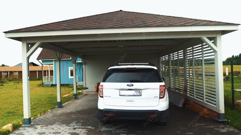 Навес из дерева послужит отличным парковочным местом для одного или нескольких автомобилей.
