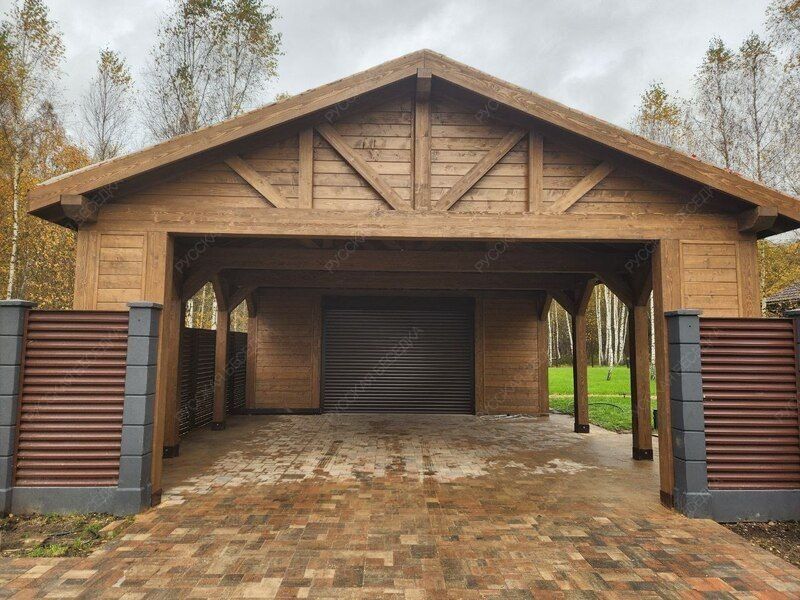 Навес из дерева послужит отличным парковочным местом для одного или нескольких автомобилей.