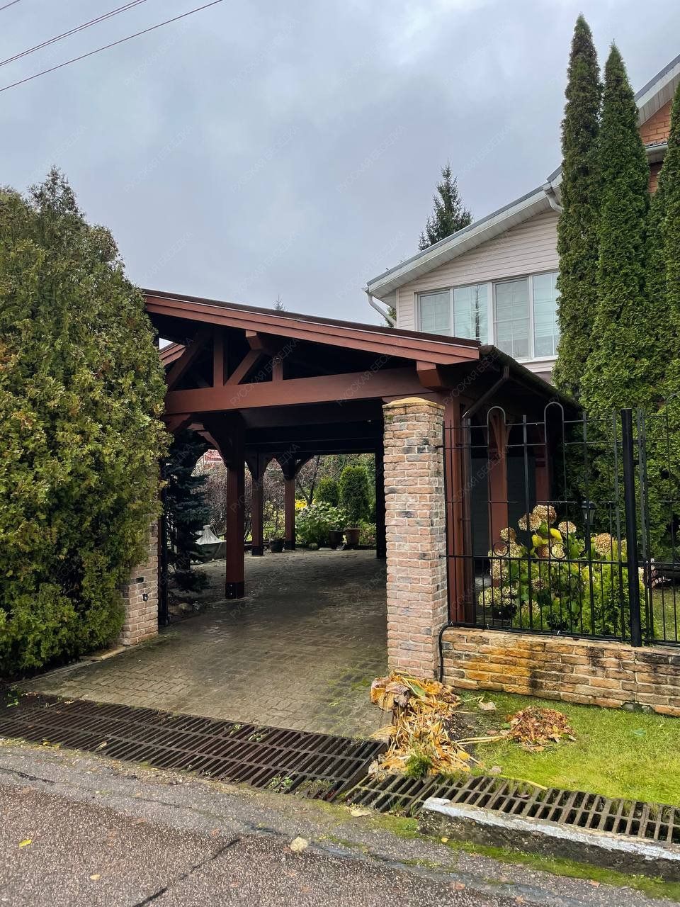 Навес из дерева послужит отличным парковочным местом для одного или нескольких автомобилей.