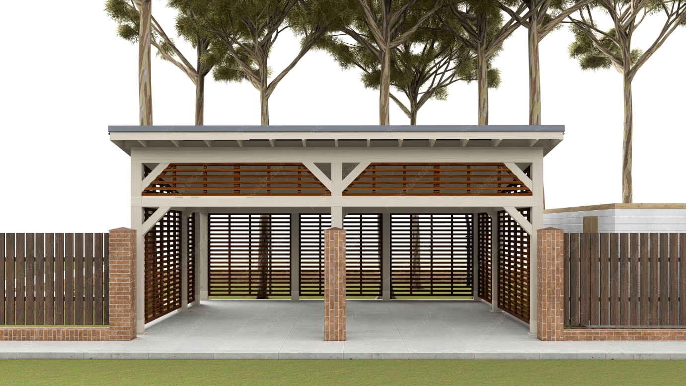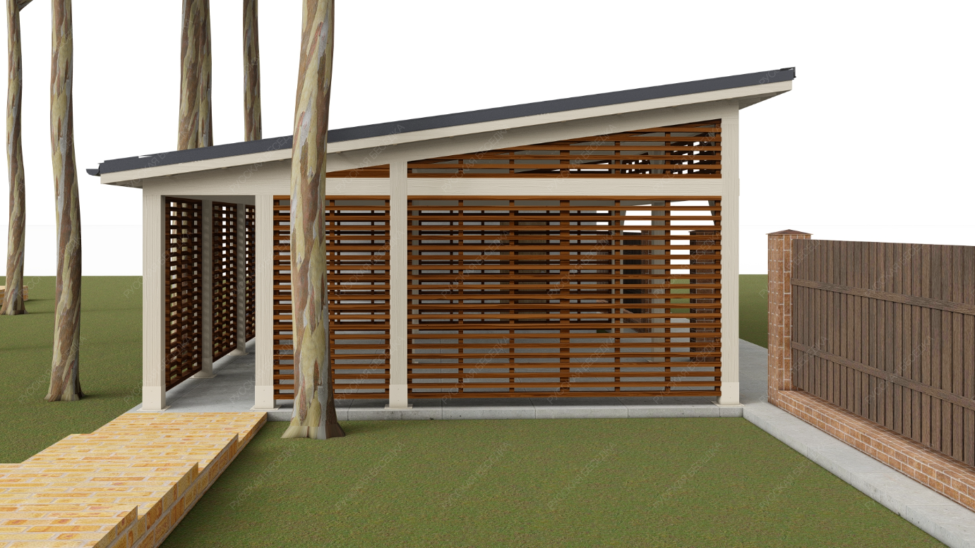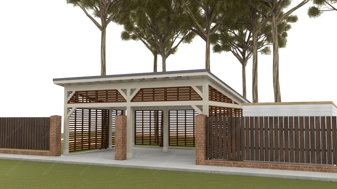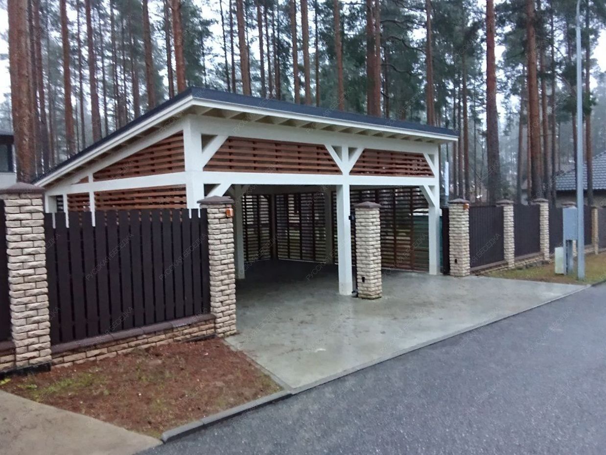 Навес из дерева послужит отличным парковочным местом для одного или нескольких автомобилей.