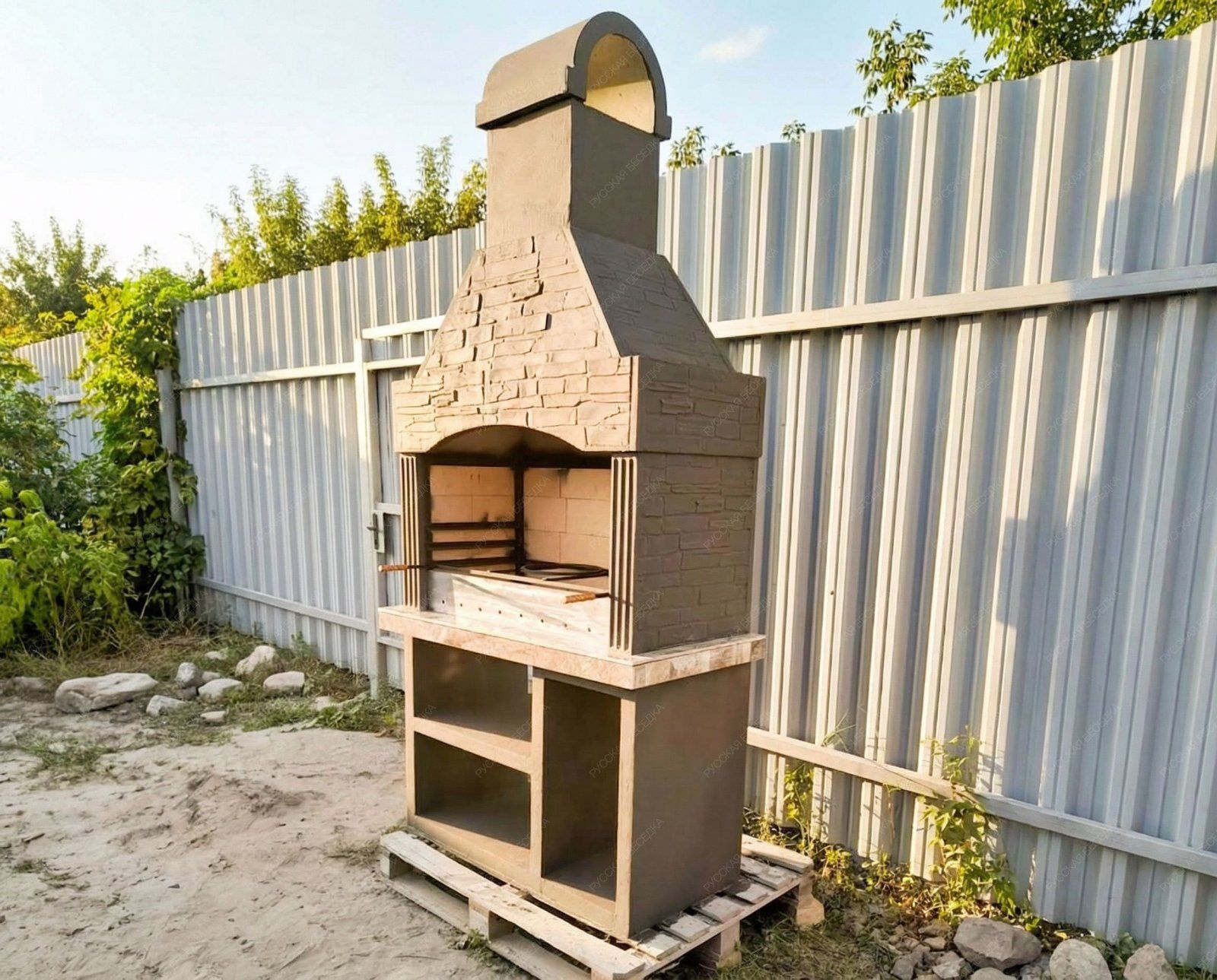 Барбекю-печь сделана из армированного огнеупорного бетона с добавлением керамзита.