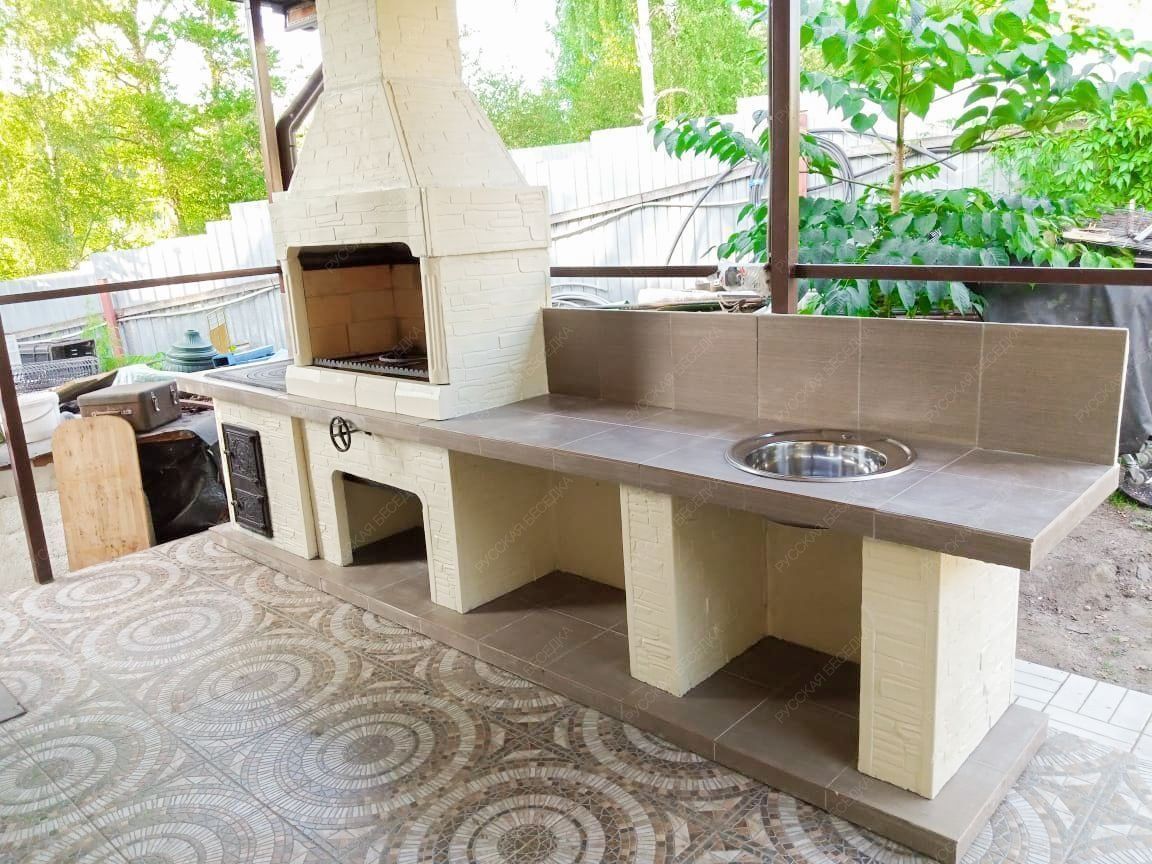 Печь № 22 — Печь барбекю с печью под казан, мойкой и рабочим столом
