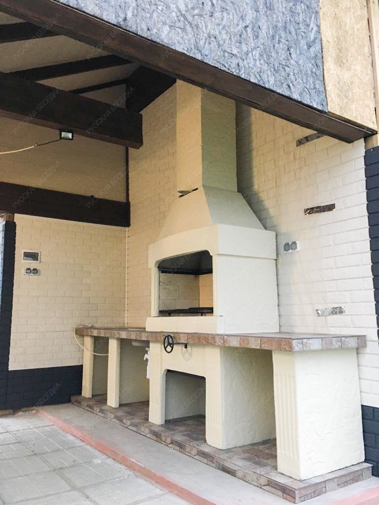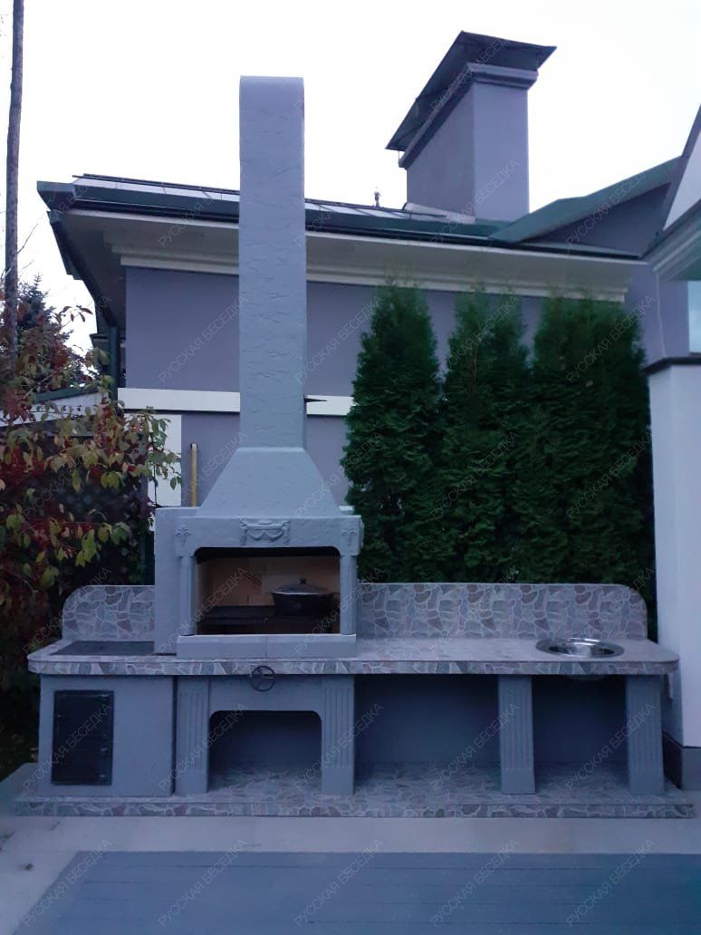 Барбекю-комплекс сделан из армированного огнеупорного бетона с добавлением керамзита.