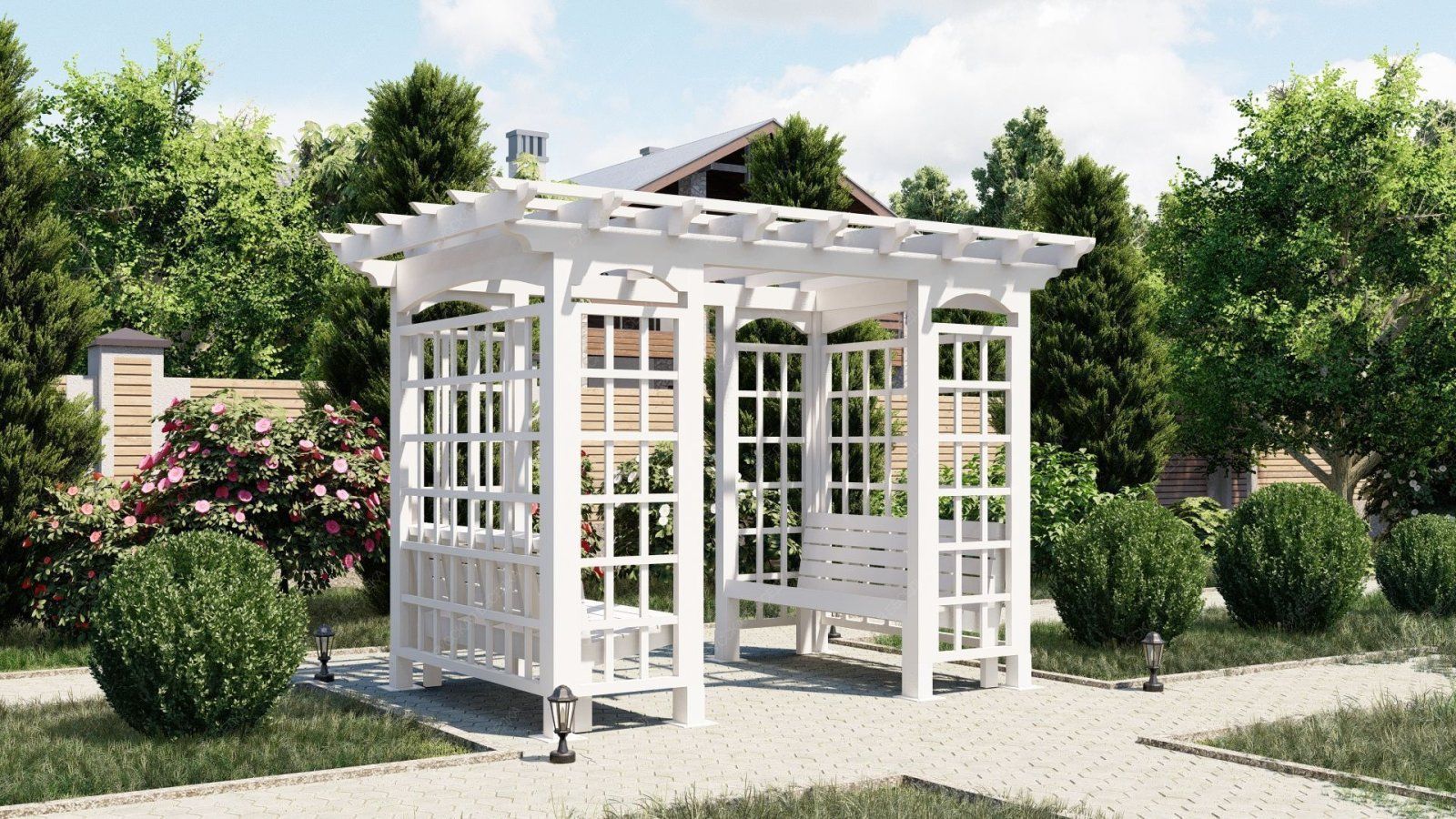 Пергола с навесом обеспечивает надежную защиту от солнечных лучей, создавая тенистое пространство для отдыха. Она станет идеальным местом для встреч с друзьями, чтения книг или приема пищи на свежем воздухе.