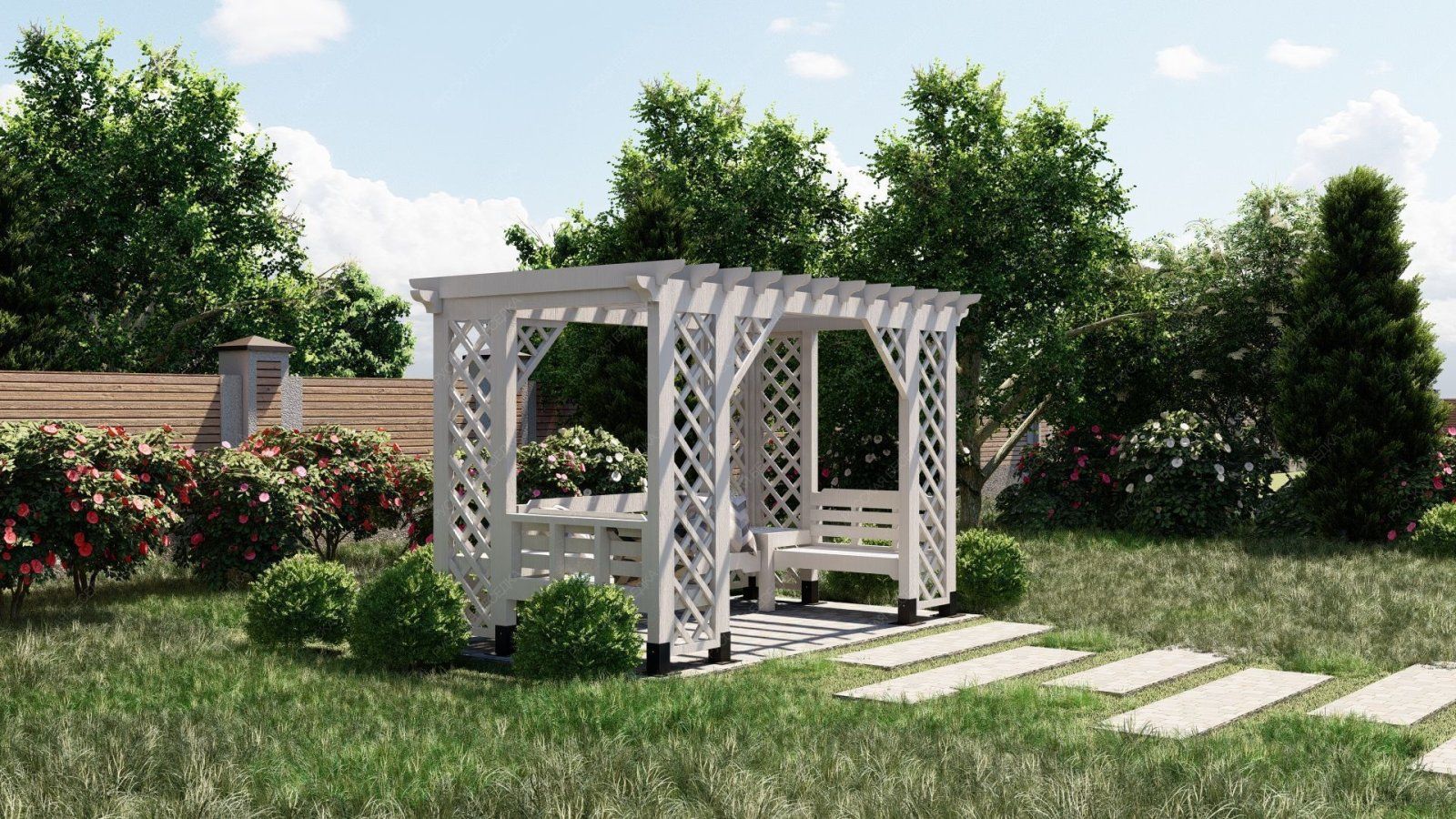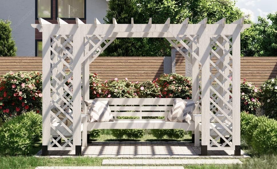 Пергола с навесом обеспечивает надежную защиту от солнечных лучей, создавая тенистое пространство для отдыха. Она станет идеальным местом для встреч с друзьями, чтения книг или приема пищи на свежем воздухе.