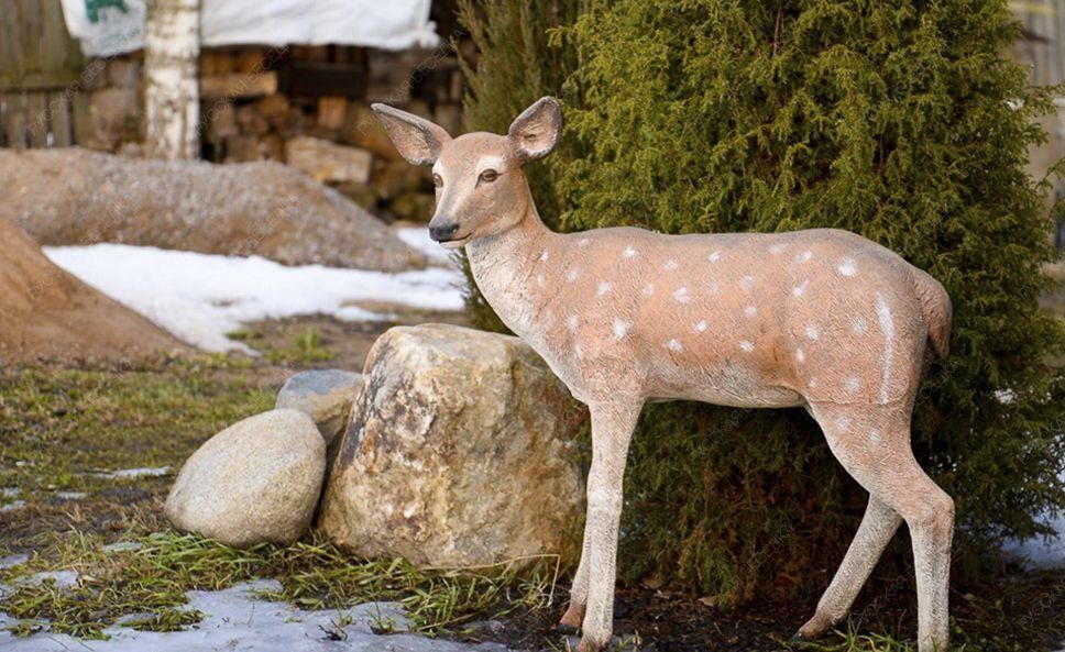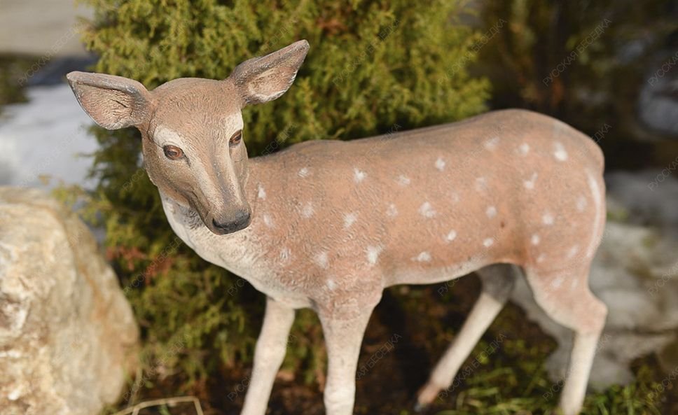 Садовая фигура Олененок, повышенной прочности, изготовлена из стеклопластика с добавлением полиэфирной смолы. Это лучший материал для изготовления садовых фигур на сегодняшний день! высота 80, длина 90, ширина 40 см, вес 7 кг.