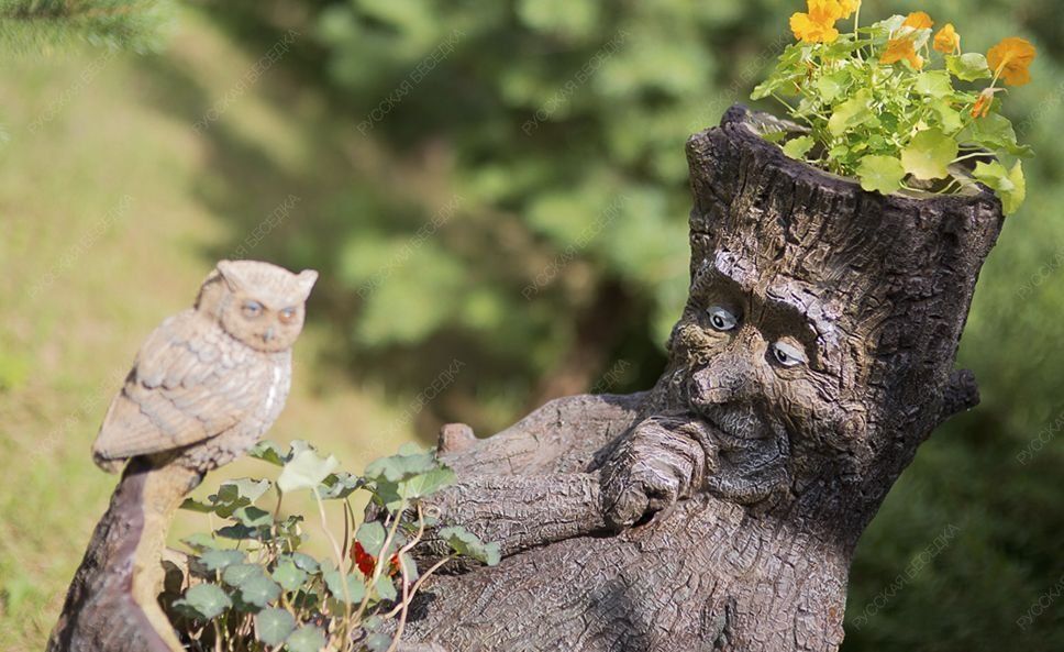 Дизайнерская фигурка-цветник «Пень с совой» украсит поляну или дополнит цветник. Садовая фигура добавит оригинальности и изящности, станет изюминкой вашего ландшафта. Фигурка из прочного, лёгкого стеклопластика, противоударная и влагостойкая, не боится изменения температуры, сохранит на долгие годы первозданный вид.                                                                                                                                                                Красивый цветник у входа в дом или у ворот на участке выглядит, как приглашение желанному гостю войти. Именно цветы создают атмосферу беззаботного отдыха, дарят отличное настроение. В тот момент, когда дачный участок перестал быть главным источником пропитания, а превратился в место проведения праздников, выходных и отдыха, это их свойство стало особенно актуальным. И ничто не подчеркнёт неповторимую красоту каждого цветка, как живописный цветник. В отличие от клумб, цветники можно расположить в любом месте: поставить на каменистую дорожку, на заросшую дикой травой лужайку или даже на веранду - для их устройства не требуется перекопанная почва, да и в принципе нужно совсем немного земли. И, кстати, растения в цветниках меньше болеют и дольше сохраняют привлекательный внешний вид. Цветник с кашпо можно превратить в настоящее неувядающее весь сезон главное украшение сада. Горшки с цветами, которые ставятся в них, можно периодически менять, заменяя виды растений по мере их цветения.       ветник на даче, выполненный как скульптура из полиэфирной смолы, - одно из лучших решений. Это экологически чистый материал, который длительное время сохраняет форму, устойчив к механическим повреждениям, хорошо себя чувствует в любых климатических условиях и при любой погоде.