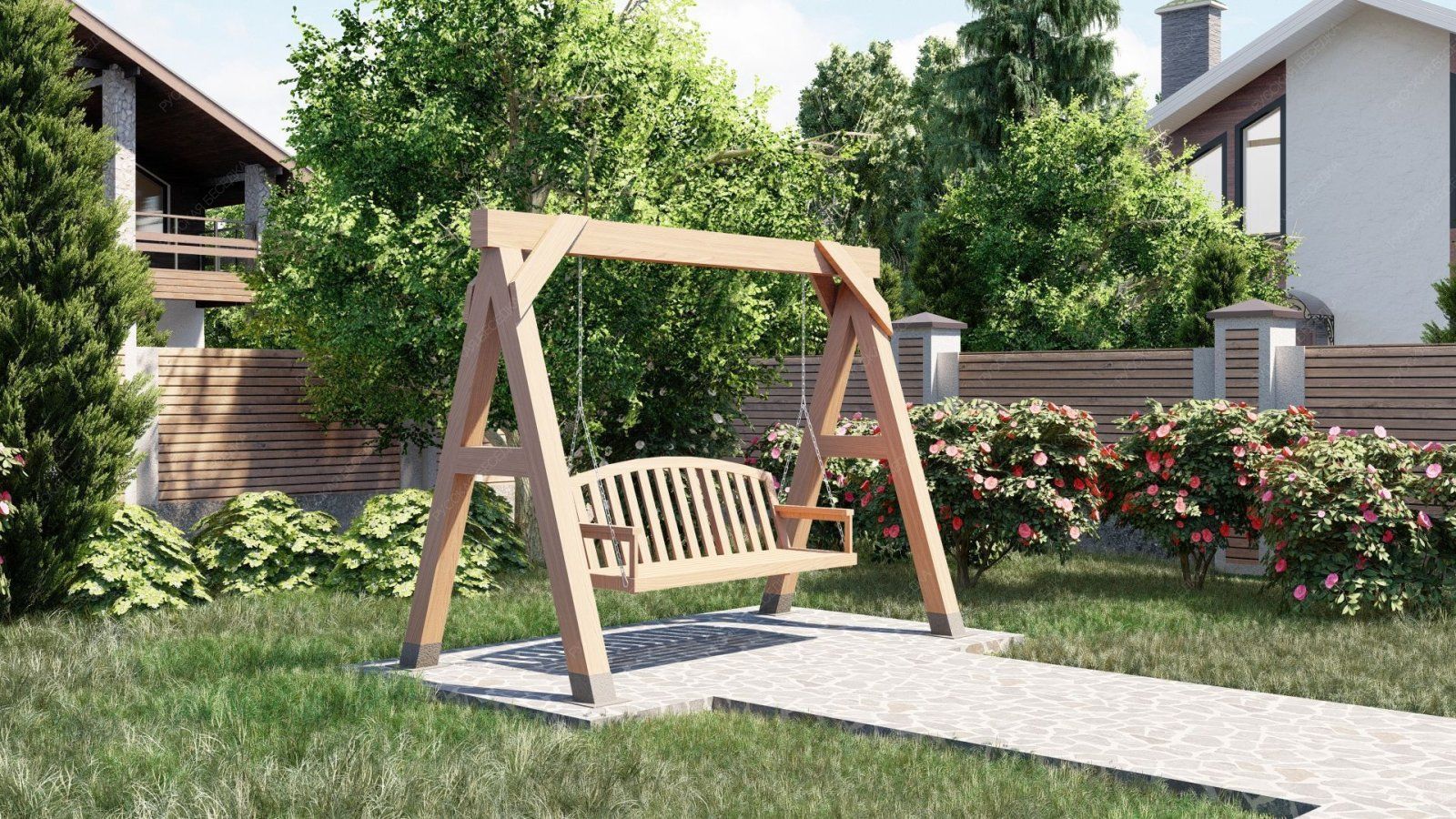 Эти качели идеально вписываются в ландшафт вашего участка, добавляя ему стильный и современный акцент. Они станут любимым местом для всей семьи, где можно провести время в общении и отдыхе.