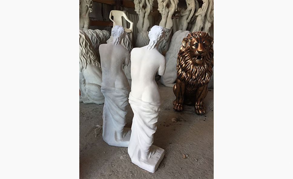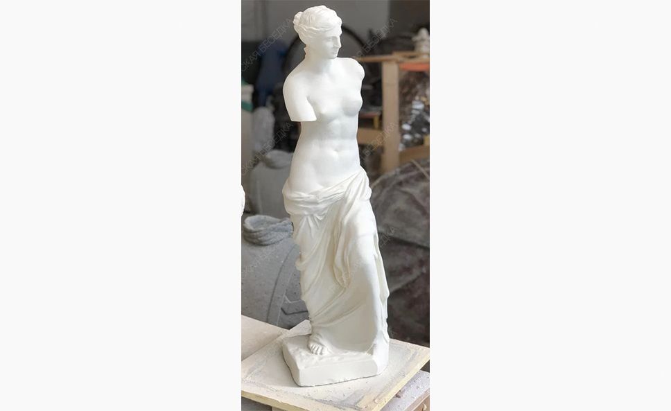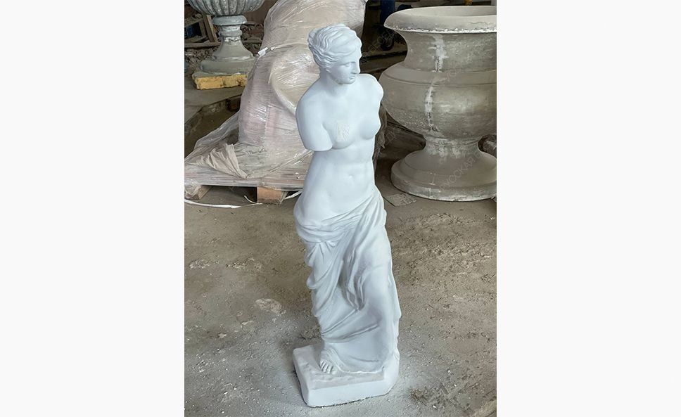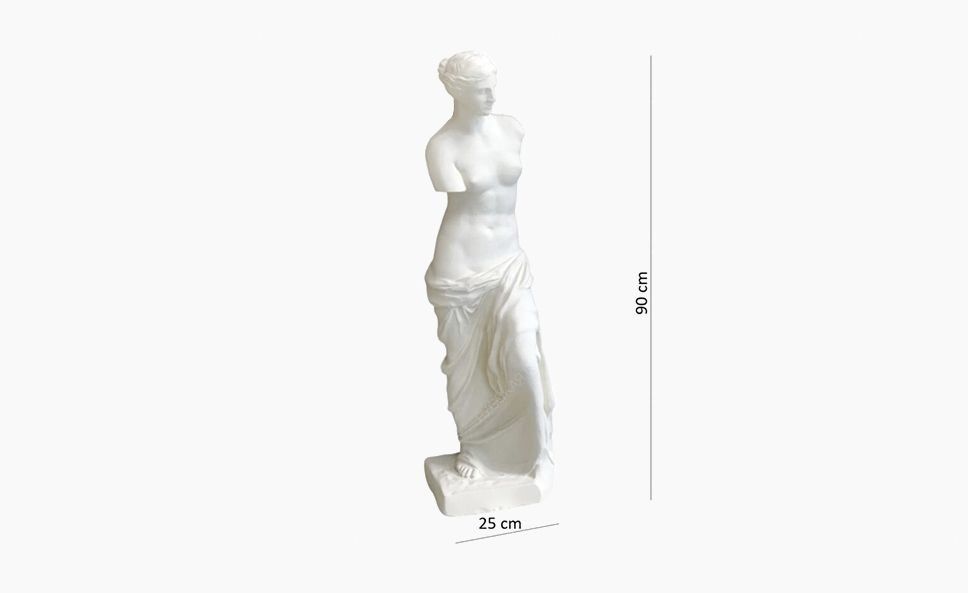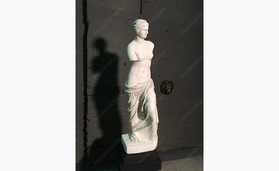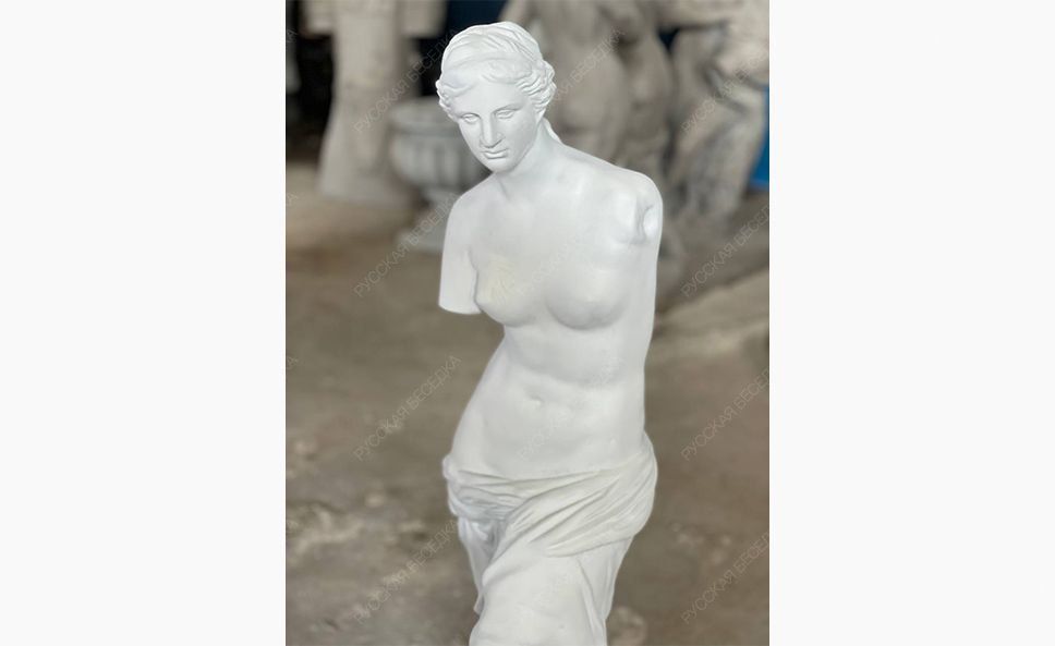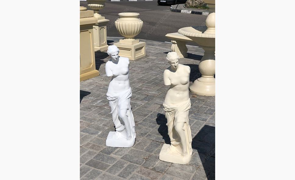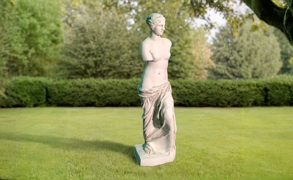 В скульптуре «Венера Милосская» мастера в точности воссоздали все детали античного шедевра. Богиня Венера — покровительница красоты, любви, желания, плодородия и процветания. О ней мечтали не только люди, но даже боги. Уменьшенная копия древнегреческой богини станет достойным украшением интерьера или садово-паркового ландшафта. Полуобнаженная фигура, сильная и одновременно женственная, – такой изобразил скульптор Венеру, богиню любви. Мягкие складки одеяния подчеркивают красоту и упругость обнаженного тела. В зависимости от того, откуда смотреть на статую, она кажется то гибкой и подвижной, то спокойной и сосредоточенной. Удивительную жизненность придает богине и посадка головы: немного влево и чуть вниз. Скульптура античная Венера Милосская станет достойным элементом ландшафтного дизайна и центральной фигурой Вашего сада в Москве в классическом регулярном стиле. Оригинальная декоративная отделка наделяет статую благородным шармом старины, подчеркивает выразительность ее рельефа и позволяет с нового ракурса взглянуть на достоинства известной скульптуры. Венера в белом цвете впишется в любой классический интерьер. Особенно выразительно скульптура будет смотреться в просторных фойе, помещениях с высокими сводами, залах кафе и т. д. Разместив скульптуру в тени деревьев, образ древнегреческой богини приобретет лирический ореол таинственности. Установив Венеру на открытом месте, она окажется центром притяжения всеобщего внимания, своеобразным стержнем, вокруг которого будет выстраиваться вся ландшафтная композиция. Отливка скульптуры производится методом вибролитья, что обеспечивает равномерную усадку и однородную структуру застывшего материала. Мы используем высокопрочный бетон, усовершенствованный путем добавления специальных присадок. Отделка с применением проверенных грунтов и фасадных красок подготавливает скульптуру ко всем неблагоприятным факторам при использовании на улице.