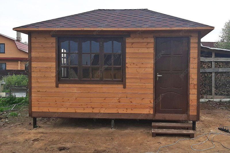 Имитация бруса 16×135 мм внутри, имитация бруса 21×135 мм снаружи.