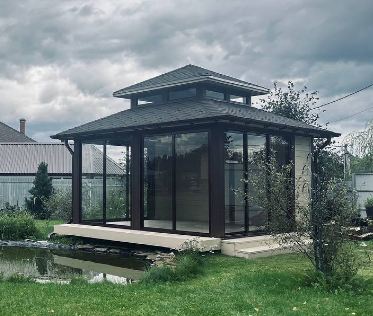 Закрытая беседка Гонконг с панорамным остеклением