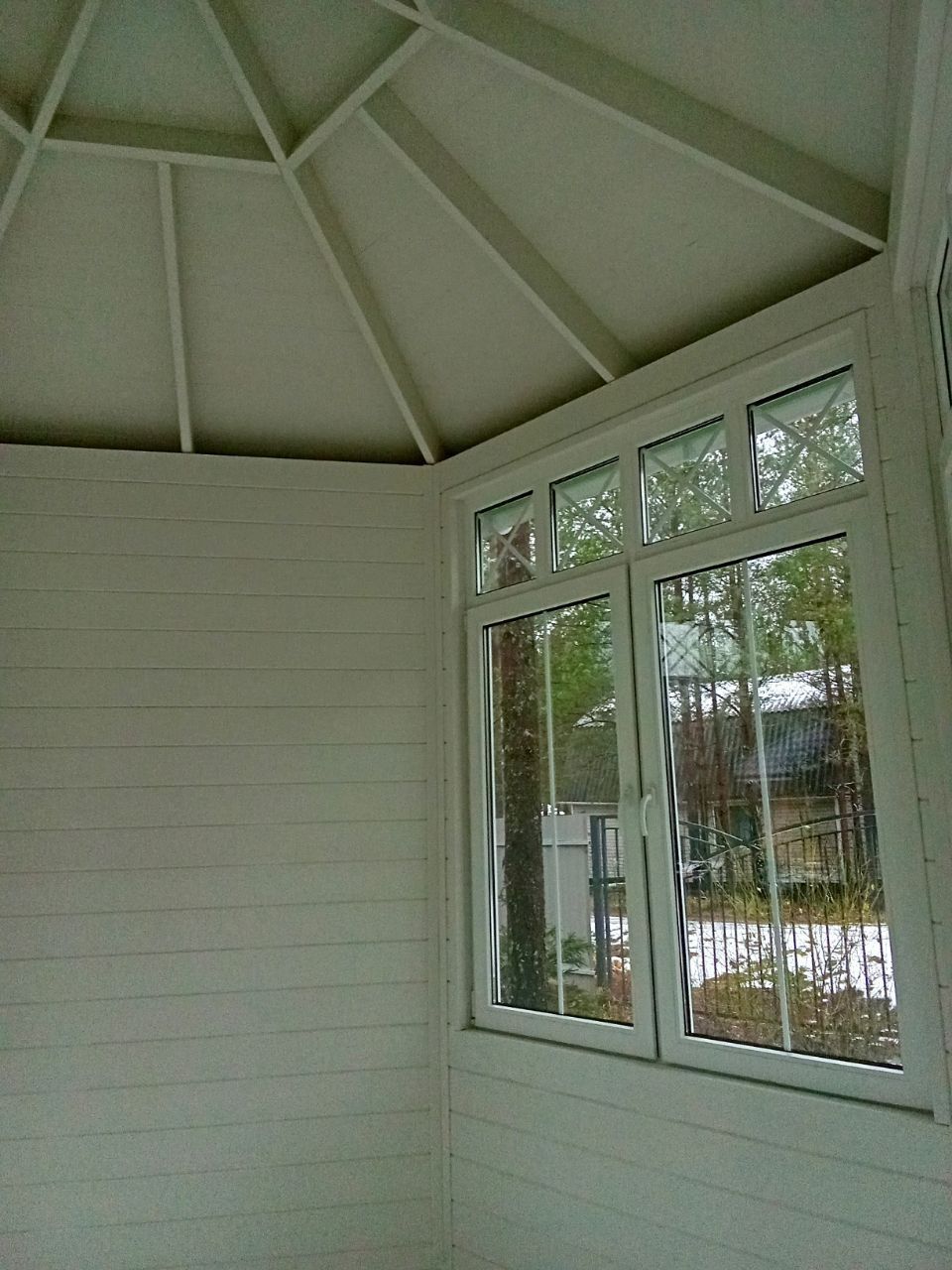 Потолок не подшит, видна стропильная система