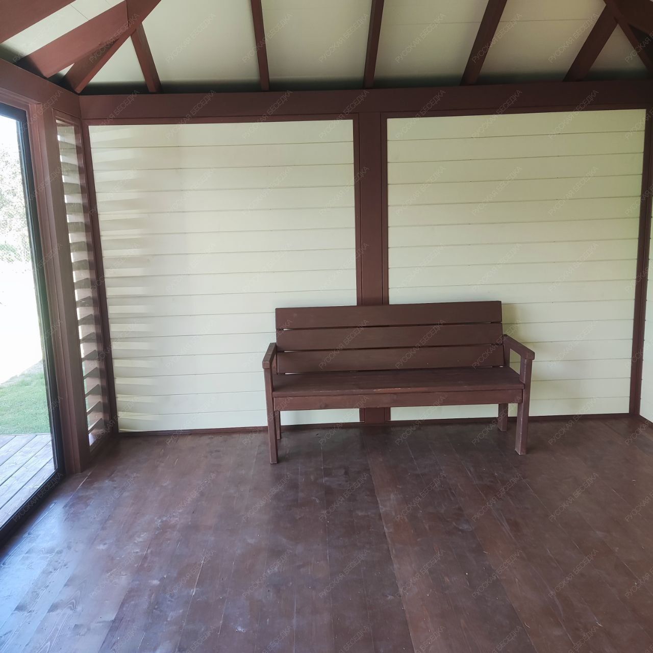 Беседка выполненная из лучших пород древесины, прослужит долгие годы и не потребует особого ухода и обслуживания. Специальные лакокрасочные материалы которые мы используем, предотвратят старение, гниение и заражение грибком конструкции кухни. Используемая огнебиозащита образует полупрозрачное полуматовое покрытие, стойкое к влаге, УФ-излучению, перепадам температуры и другим атмосферным воздействиям.
